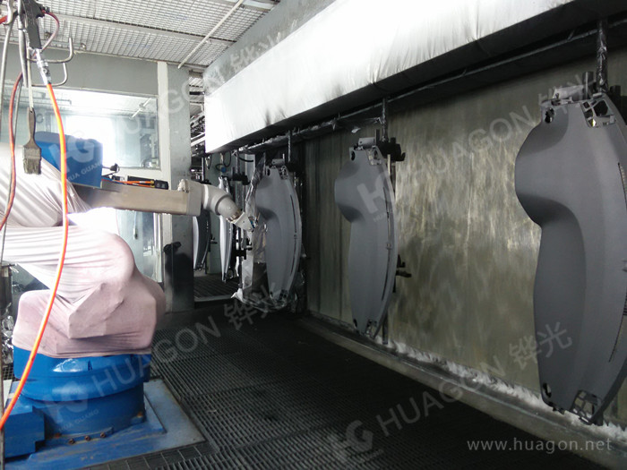 上料-配合多角度自轉換面-自動噴涂-下料